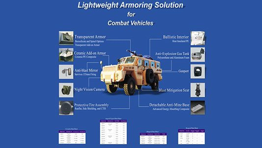 用于軍用、警用,工程及民用等各種車輛的防護(hù),應(yīng)對(duì)襲擊事件和其他群體性攻擊破壞,可抵抗棍棒,磚石,尖鎬等破壞工具的較長(zhǎng)時(shí)間攻擊,子彈射擊甚至可抵擋低當(dāng)量爆炸物產(chǎn)生的沖擊波和碎片。